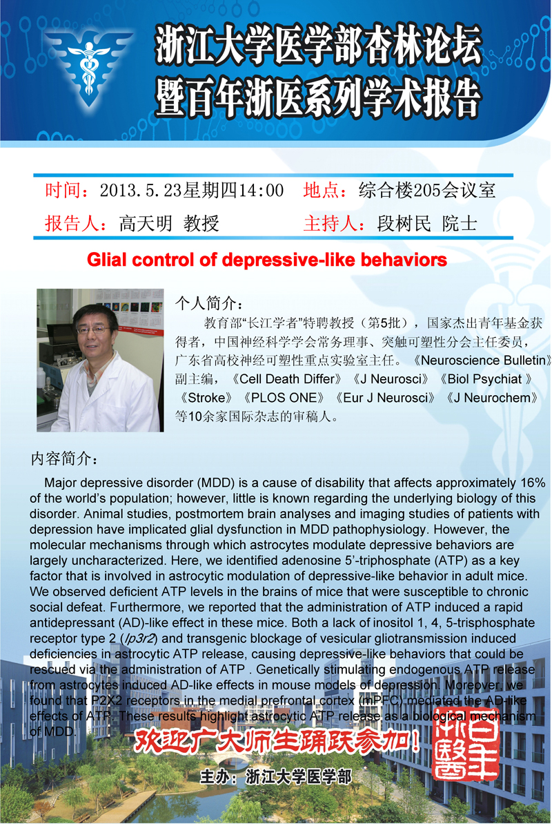 杏林论坛学术报告第二十场——高天明教授学术报告