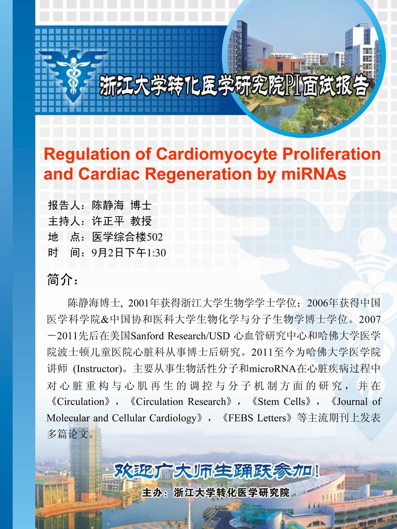 哈佛大学医学院波士顿儿童医院陈静海博士学术报告