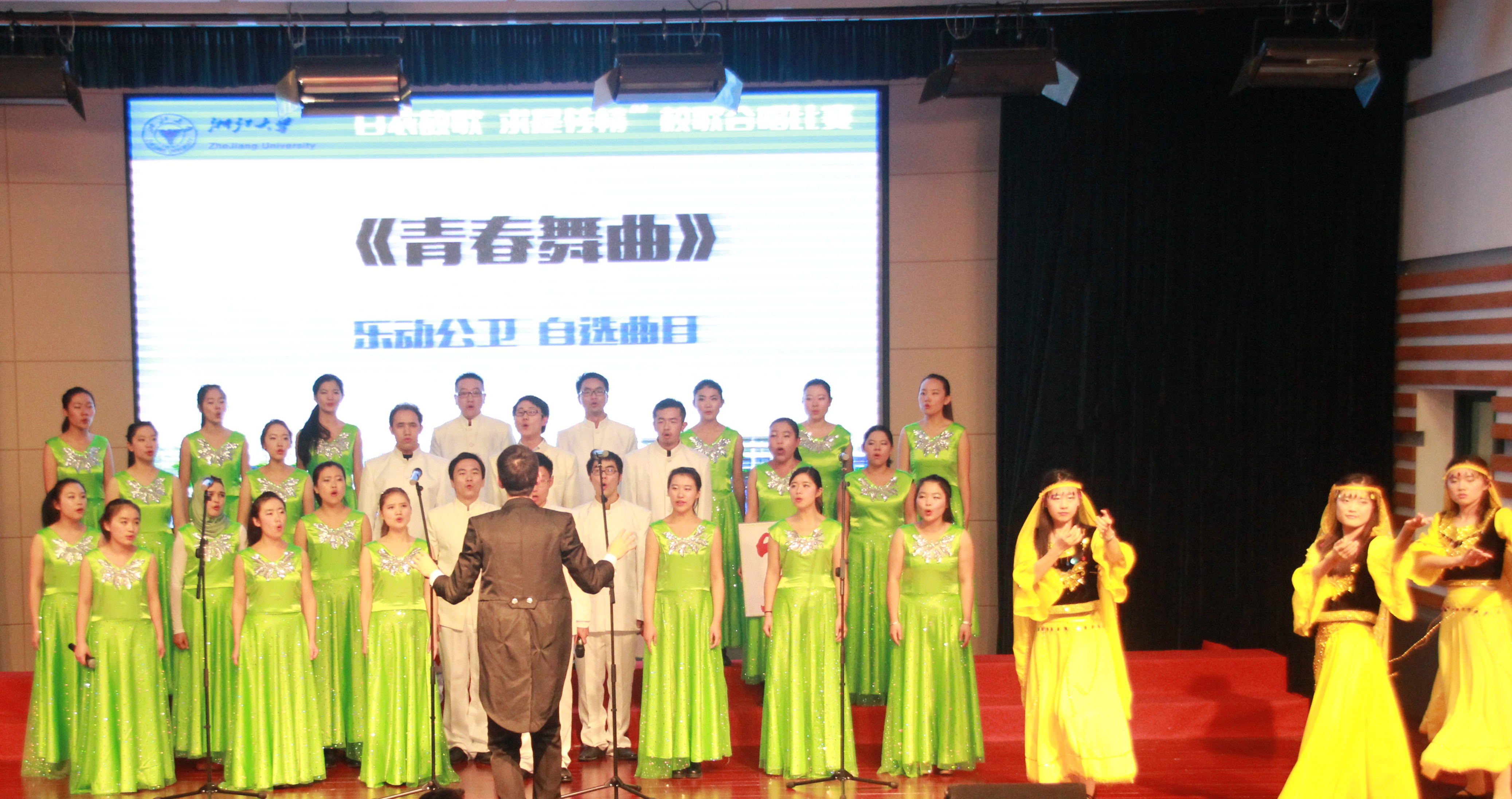 公共卫生系队是第一个出场的队伍,当他们唱出校歌第一句“大不自多,海纳江河”的时候, 立即吸引了全场所有人的目光,从他们歌声里所透露出奋发向上的精神触动了在场所有的人,而委婉动听的自选曲目《青春舞曲》加上美丽的舞蹈,更是让人惊叹;第二个出场的队伍是浙医一院队,雄壮的校歌后是活泼向上的《阳光路上》,让大家坚信医学之路这充满阳光;妇儿口腔医院联队不仅将校歌演绎的动人心弦,一首《爱因为在心中》更是唱出了医者的大爱;浙医二院队第四个出场,高亢嘹亮的校歌搭配温婉绵长的《光阴的故事》,让大家在回忆往昔中思绪翩翩,多样的队形变换也让人惊喜连连;邵逸夫医院队为大家演绎了校歌与《仰望星空》,挥舞的星星,纸飞机优美的弧线,给大家留下了深刻的印象;基础医学系作为去年的冠军,通过开场一段耳目一新的影子戏,给大家讲述了基础医学系的过去、现在,更憧憬了美好的未来,随后的校歌和《歌唱祖国》,不禁让人感叹,基础医学系果然不同凡响;最后压轴的是我们医学院的新成员——转化医学研究院队,虽然是第一次参加比赛,但是选手们毫不怯场,一首《明天会更好》,振奋人心的口号和团结协作的气势让我们坚信,转化医学研究院的明天一定会更好!