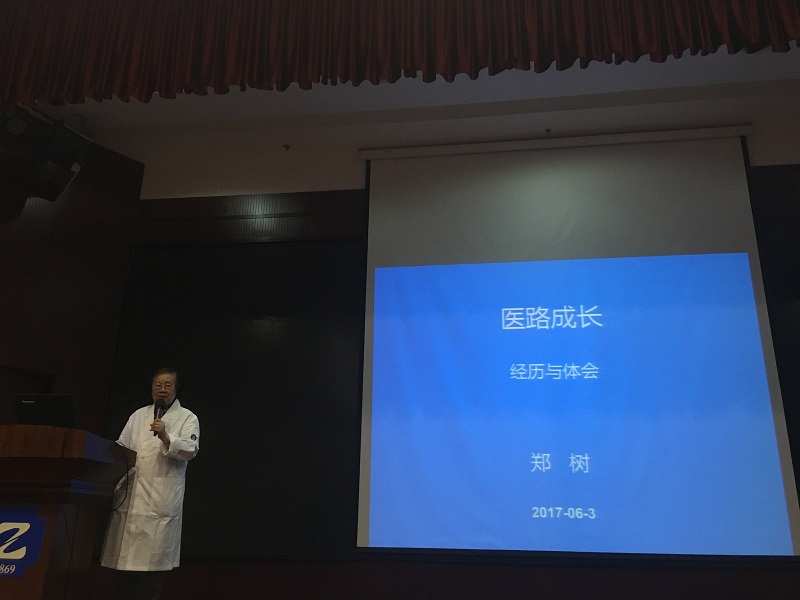 郑树老校长以“医路成长”为题,从德、智、能、体、人文素养等多个角度,与在座毕业生分享了自己从医六十余年来做人、做事、做学问的经历和感悟。郑校长语重心长地教导大家:无德不医,医务人员是患者生命的托付者,要做专心的倾听者,仔细的观察者,敏锐的交谈者和有效的临床医生。郑校长讲述了自己在浙江医科大学和肿瘤学科建设中遇到的困难和努力,讲述了临床上有趣而又发人深省的亲身经历,叮嘱医学生要有责任心和事业心,要将基础知识温故知新并灵活应用到临床。85岁高龄的郑校长因为对医学的热爱,因为这份责任心和事业心,一直坚持活跃在临床、科研的第一线。郑校长高尚的医德医风,严谨的治学态度,渊博的医学知识,亲切豁达的人格魅力,引得台下掌声连连,震撼、启迪和激励着在场的每一个人。