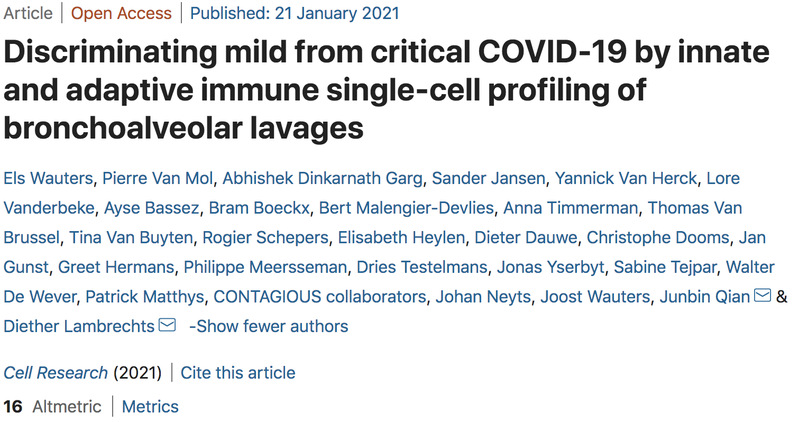 1月21日,日韩欧美福利视频_黑人巨大人精品欧美三区_欧美成人另类人妖_欧美在线精品一区二区三区_欧美一区二区三区性视频_日韩精品欧美视频_性欧美极品xxxx欧美一区二区附属妇产科医院钱俊斌研究员与比利时VIB研究所Diether Lambrechts 教授以及鲁汶大学等团队合作,在Cell Research杂志在线发表了题为“Discriminating mild from critical COVID-19 by innate and adaptive immune single-cell profiling of bronchoalveolar lavages”的研究。该研究对22位新冠肺炎和13位普通肺炎病人的肺泡灌洗液进行了单细胞转录组、免疫组 (TCR, BCR) 联合测序,系统构建了新冠肺炎免疫反应图谱(图1),第一次在单细胞水平上比较了新冠肺炎与普通肺炎在致病机制上的区别,并在整合分析后揭示了轻症转为重症新冠肺炎的关键免疫学动态机制。