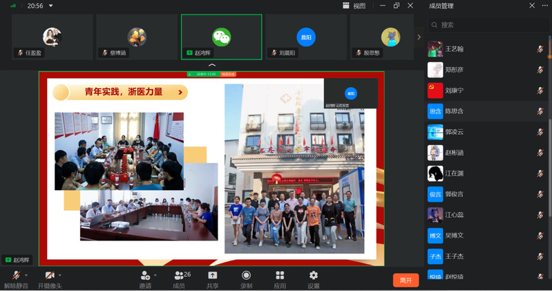 为进一步凝聚共识、动员力量,激励支部党员以昂扬向上的斗志和奋发有为的精神状态投入到当前各项学习和工作中,20221130日,临床医学本科生第三党支部通过钉钉会议的形式线上开展党员大会暨学习贯彻党的二十大精神。本次党员大会特别邀请到了临床医学本科生第一党支部书记赵鸿辉作党课分享,支部党员、发展对象及各团支部书记共27人参加会议。会议由党支部书记刘晨阳主持。